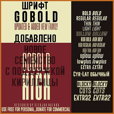 Шрифты - Gobold [TTF, OTF] Набор некоммерческих шрифтов. Количество: 31 шт. Разработчик: Situjuh Nazara Поддержка кириллицы: Есть (Русская, Украинская, Белорусская, Молдавская) у шрифта Gobold Cyr-Lat, адаптировал D. Astakhov.Формат: TTF, OTF magnet:?xt=urn:btih:C881E7804A5AE0D9A16A41A2A518CD2F9C62F461 ------------------------------------------------------------------------------------------------------- |