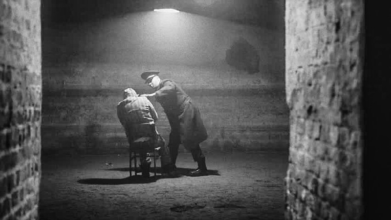 Тюремщик допрашивает заключенного. СССР, 1949 год.