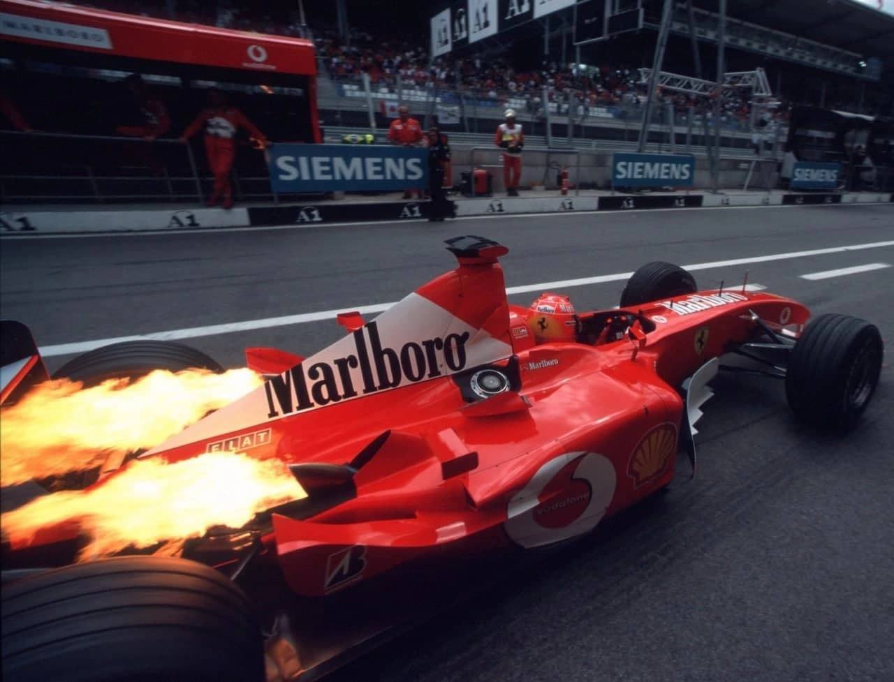 Mиxaэль Шyмaxep летит к победе на этапе «Формулы-1», 2002 год.