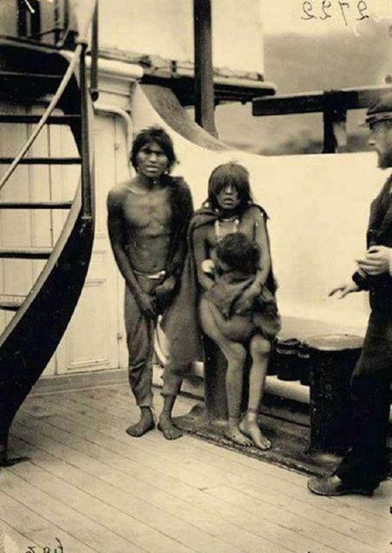 Семью индейцев везут в Европу в качестве новых обитателей зоопарка. 1889 г.