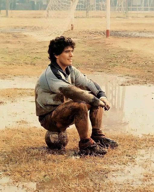 Молодой Диего Марадона после тренировки, 1980-е.