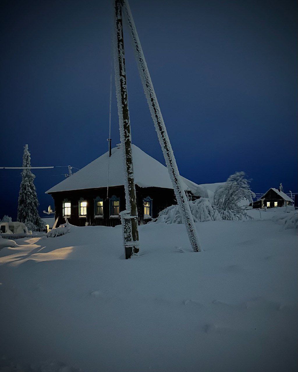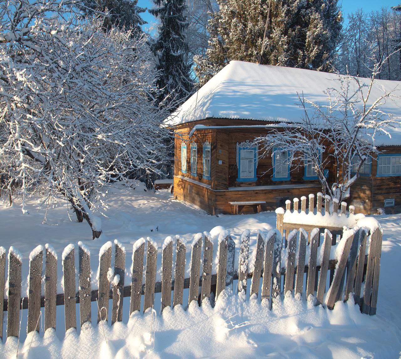Перед нами обычная изба четырехстенок с сенями, но как украшена! Вся в затейливой резьбе, словно в кружевной рубашке.