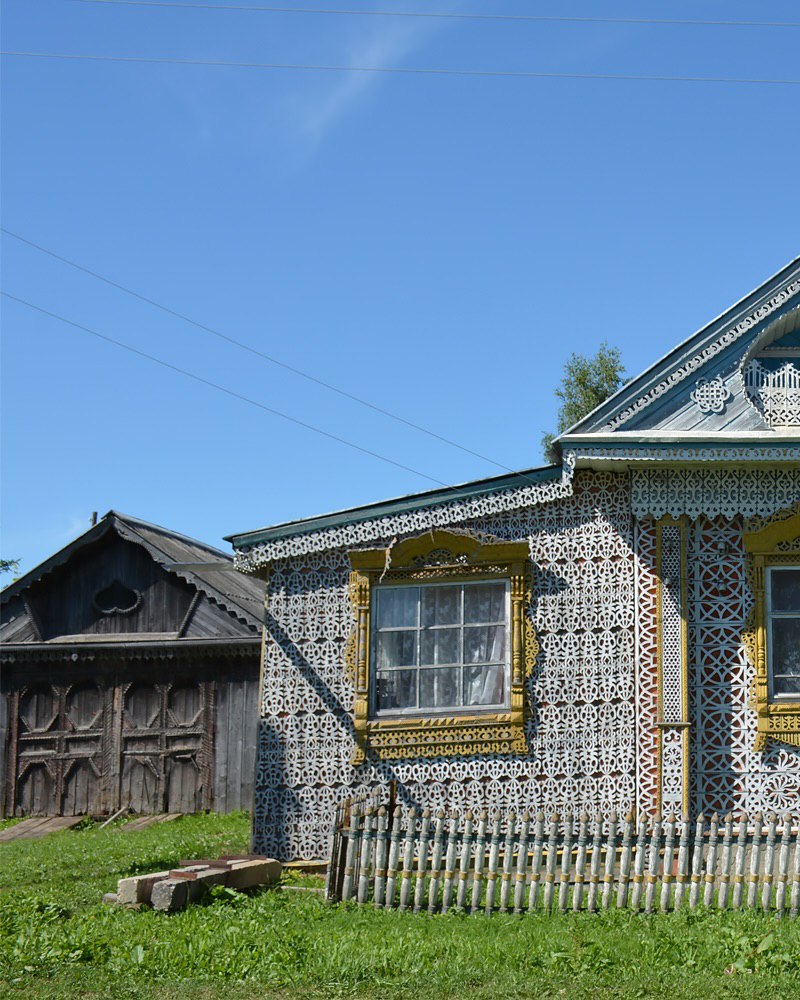 Создал это чудо - резчик Константин Муратов, и хотя «дерево» не было его основной профессией, за свою жизнь он вырезал около 2500 наличников. Этот дом, срубленный собственными руками, мастер очень любил, и решил сделать его самым красивым в округе. Над орнаментом трудился по вечерам, после работы, на протяжении двух лет…