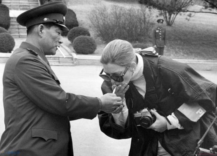 Северокорейский офицер подкуривает сигарету американской журналистке в демилитаризованной зоне, 1988 год.