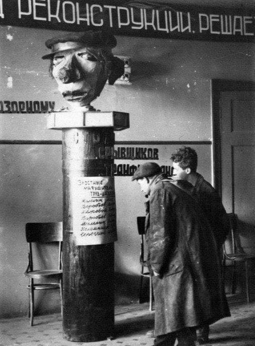 Доска позора с фамилиями нарушителей дисциплины на станции Ховрино, Московская область, СССР, 1932 год.