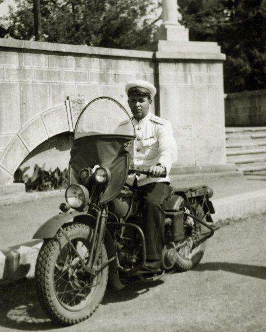 Советский милиционер на «Харлее» в Сочи, 1947 год.