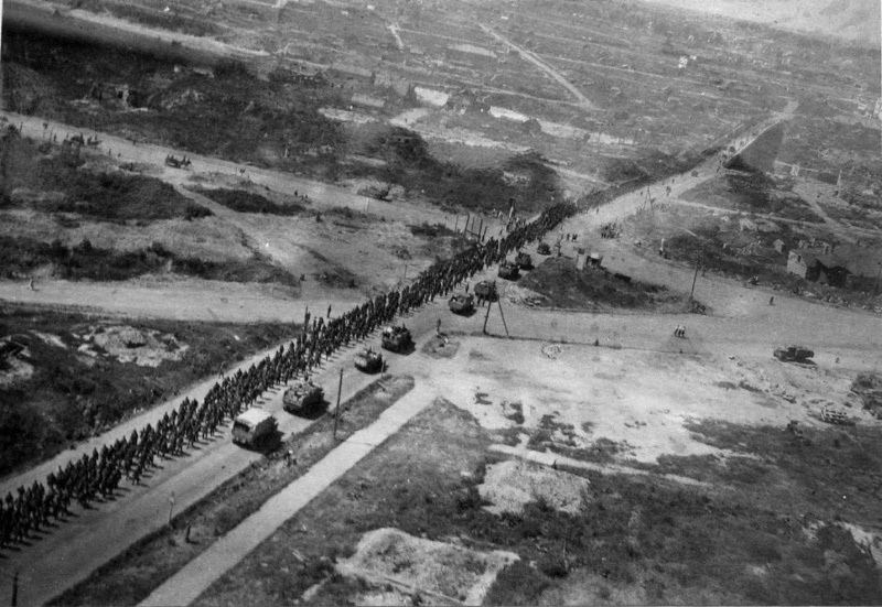 Колонна пленных немцев на шоссе Витебск — Смоленск, БССР, 1944 год.