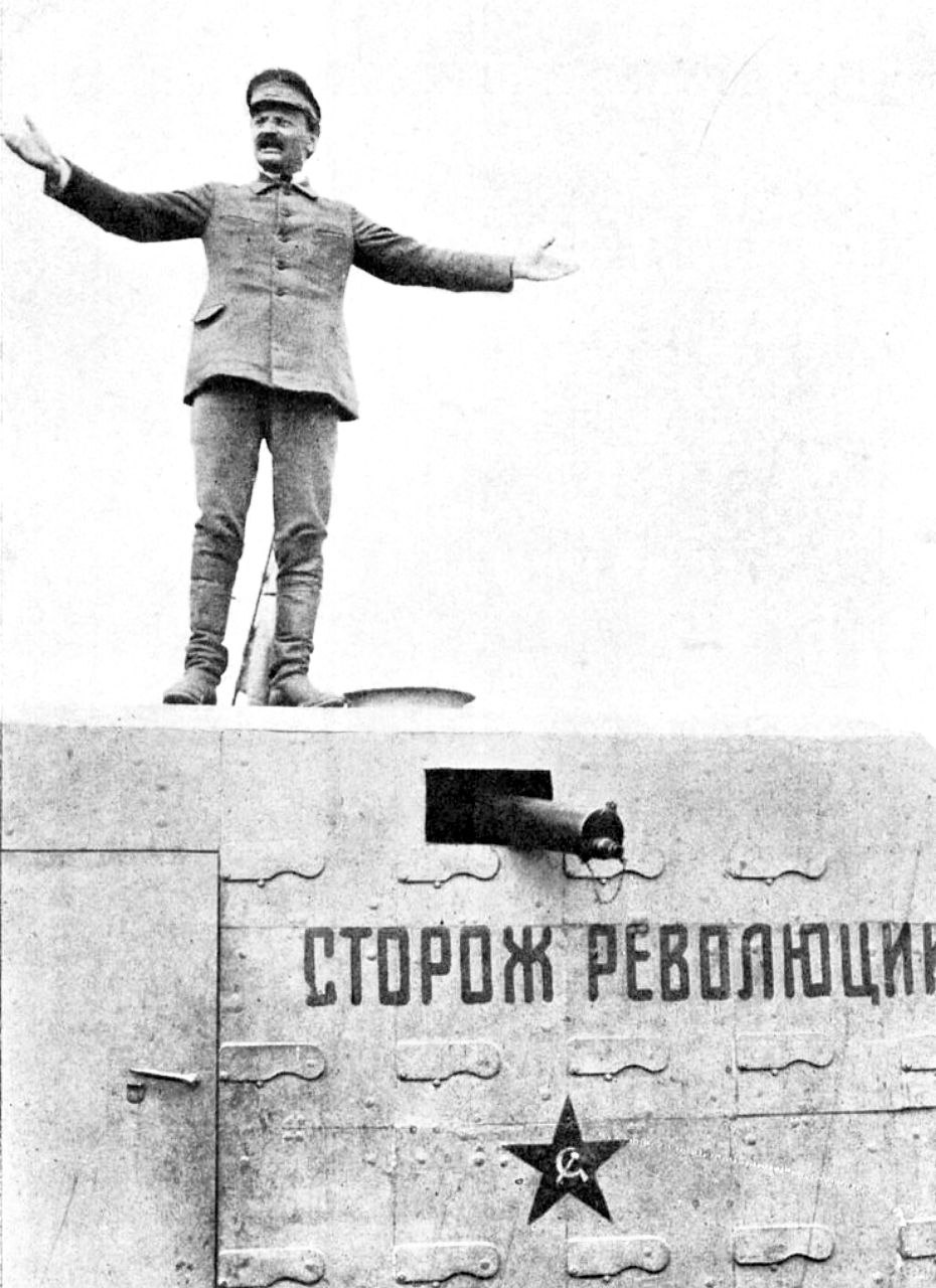 Лев Троцкий произносит речь с бронепоезда, Крым, 1921 год.
