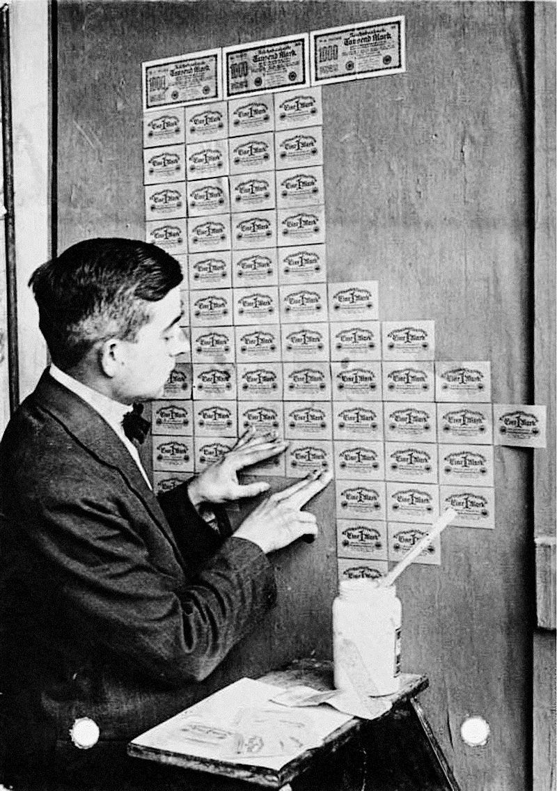 Мужчина использует деньги в качестве обоев во время гиперинфляции. Германия, 1923 год