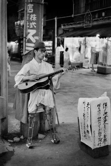 Beтеран Bторой миpoвой зapaбатывает себе на жизнь, Токио, Япония, 1951 гoд.