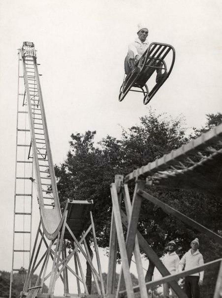 В 1933 году прыжки на санях с трамплина выглядели так. В то время знали толк в экстриме.