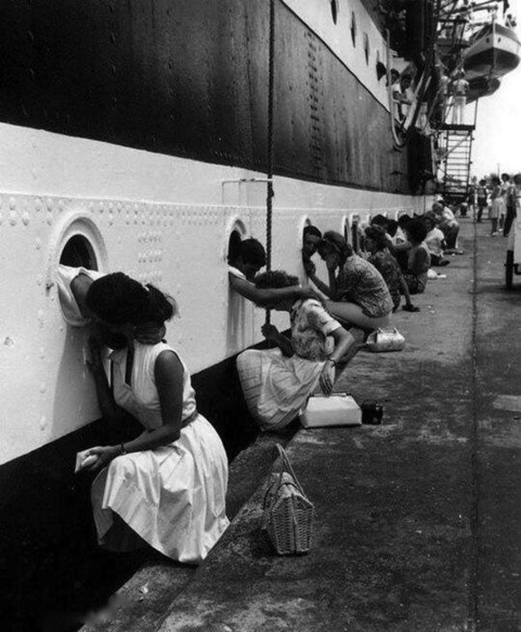 Члены экипажа итальянского парусника "Америго Веспуччи" прощаются со своими девушками и женами перед отплытием. Неаполь, 1963 год.