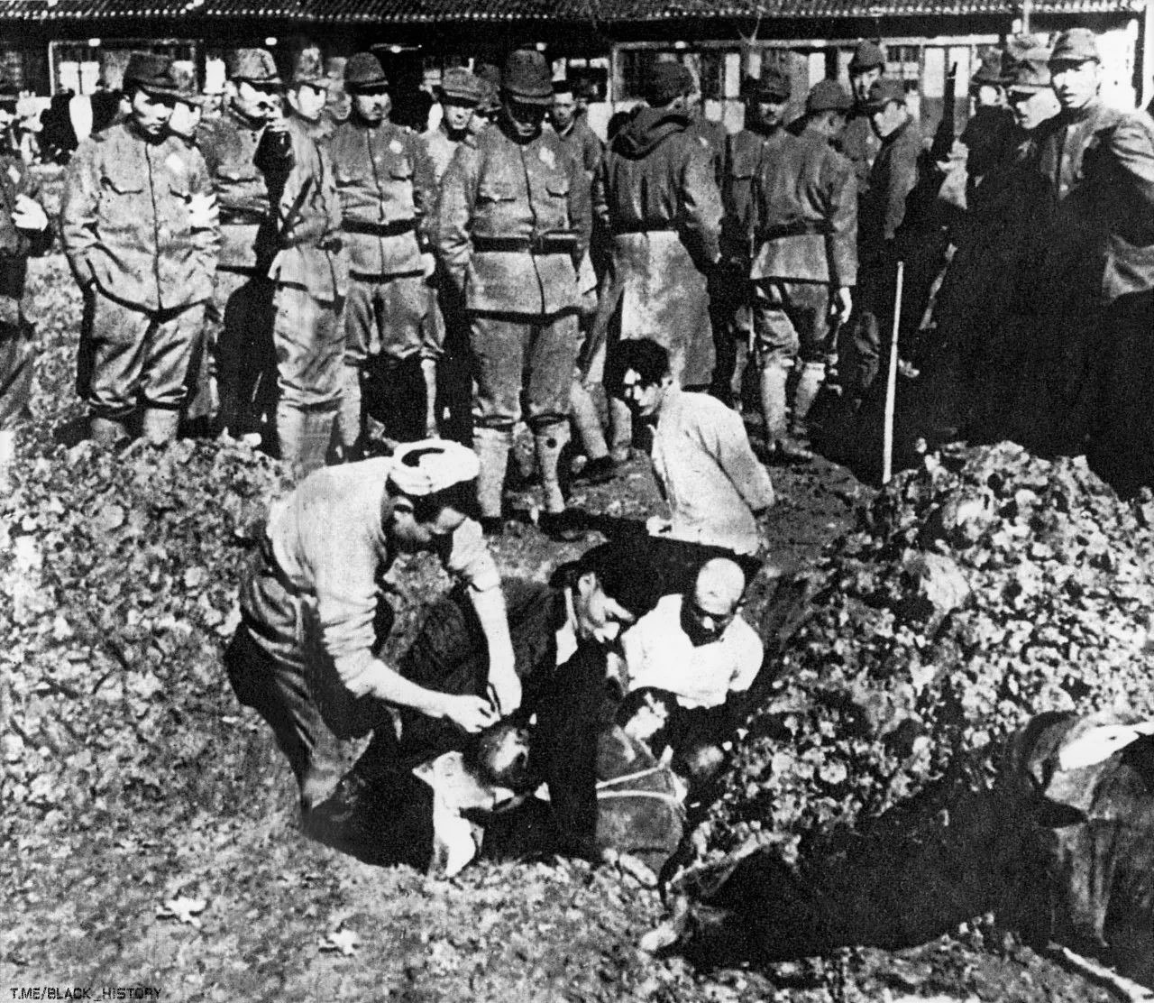 Японские солдаты издеваются над китайскими пленниками во время «Нанкинской Резни» 1938 года.