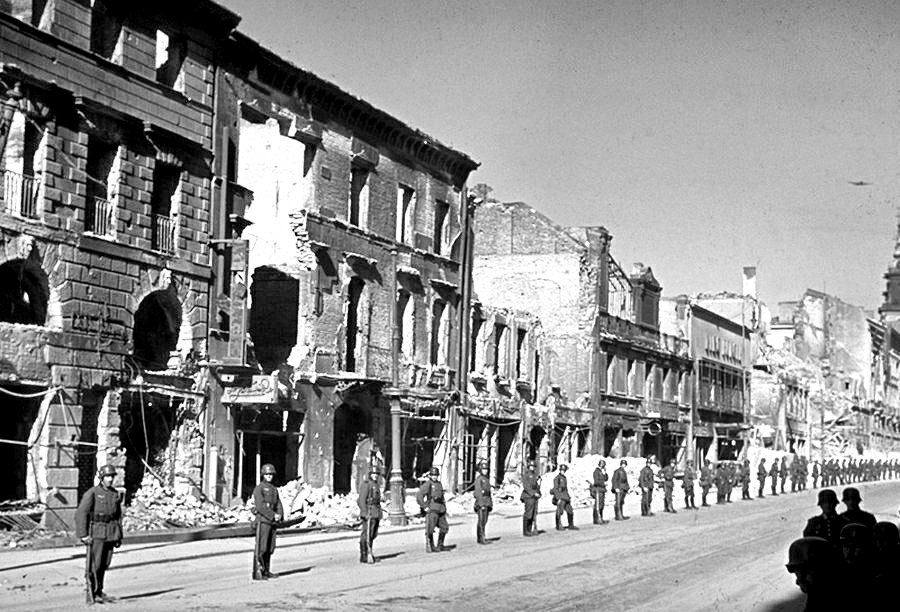 Немецкая армия готовится к параду в захваченной Варшаве, Польша, 1939 год.