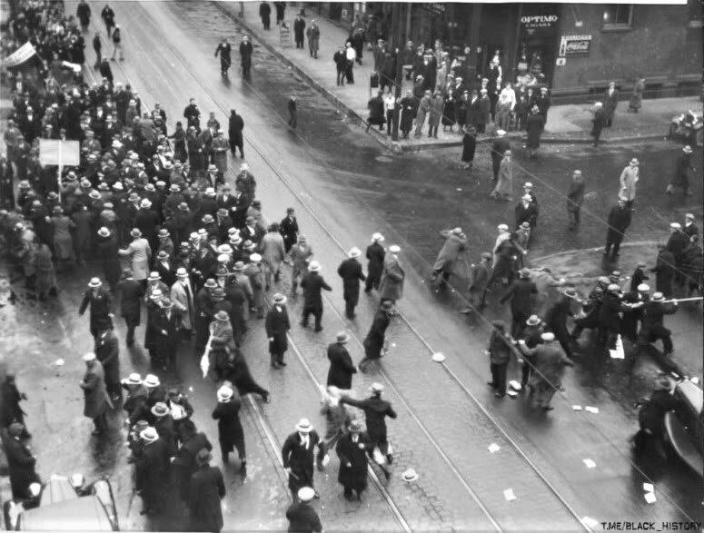 Столкновение демонстрантов против голода на Украине и американских коммунистов. Чикаго, 1933 г.
