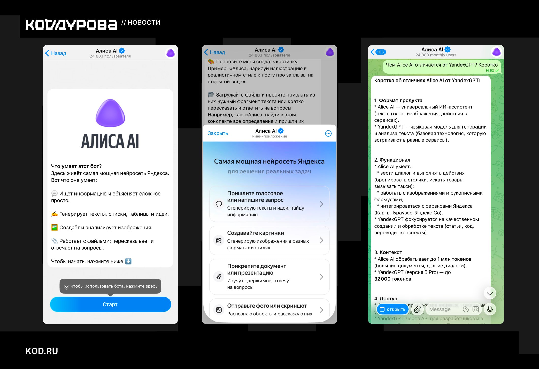 ↖️ https://kod.ru/alice-ai-v-telegram