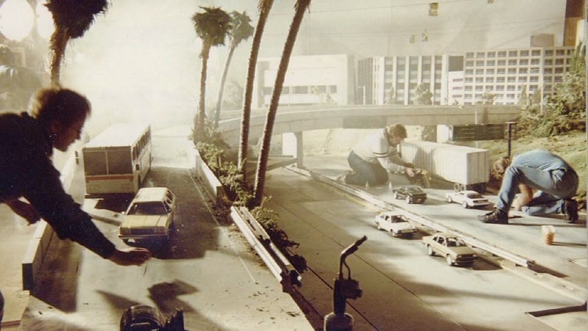 Роберт и Деннис Скотак монтируют "ужасную ядерную катастрофу" в съёмочной студии фильма Терминатор 2 - Судный день, 1991 год.