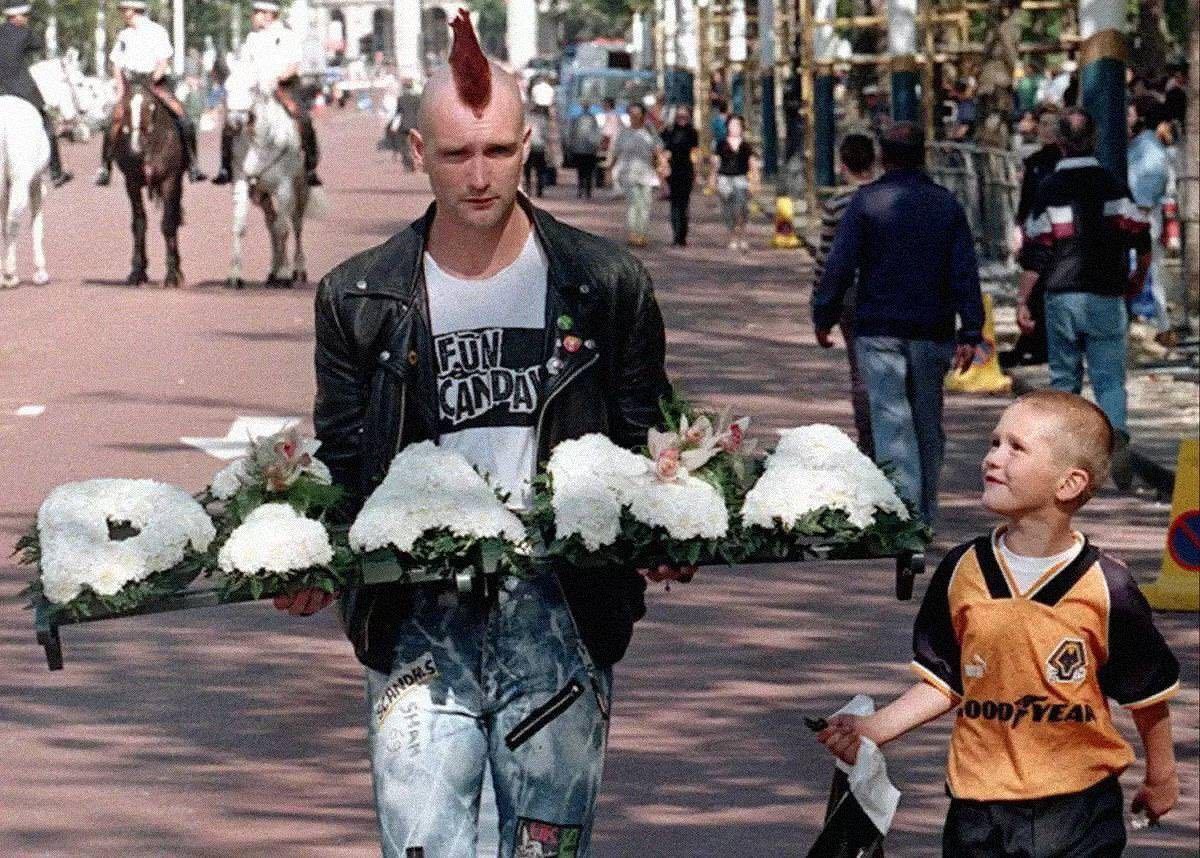 Панк несет венок в знак скорби о гибели принцессы Дианы, 1997 год.