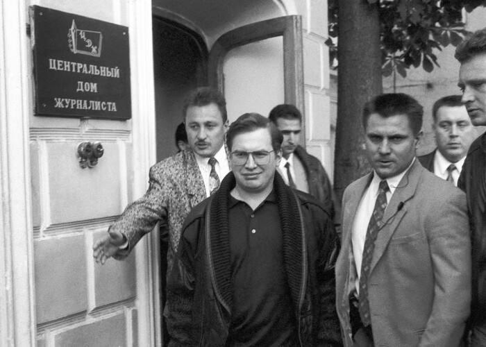 Сергей Мавроди у дома журналистов, 1990-е