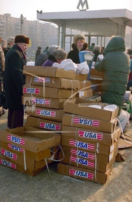 «Ножки Буша». Москвичи стоят в очереди за американскими куриными окорочками, 1994 год.