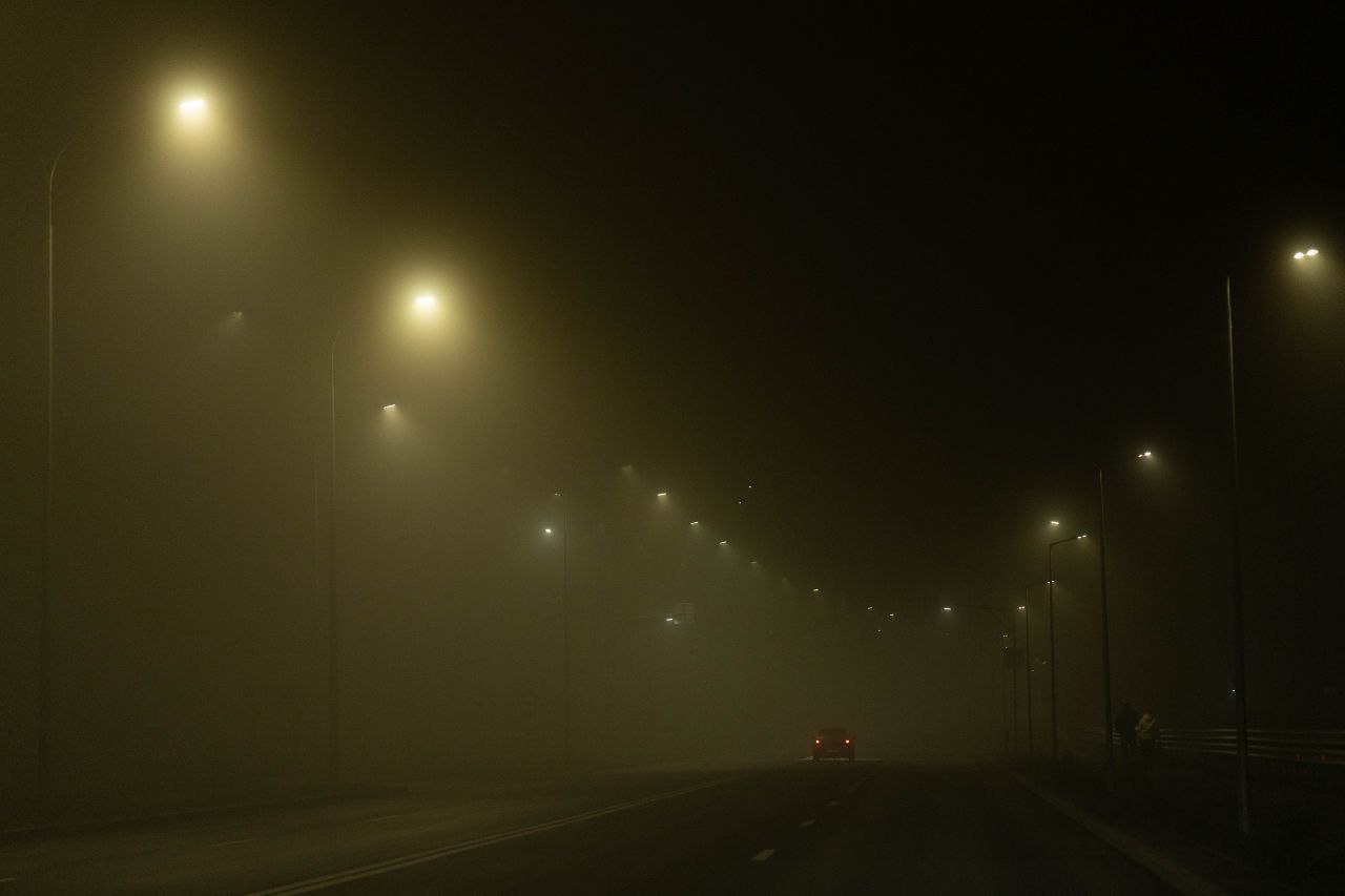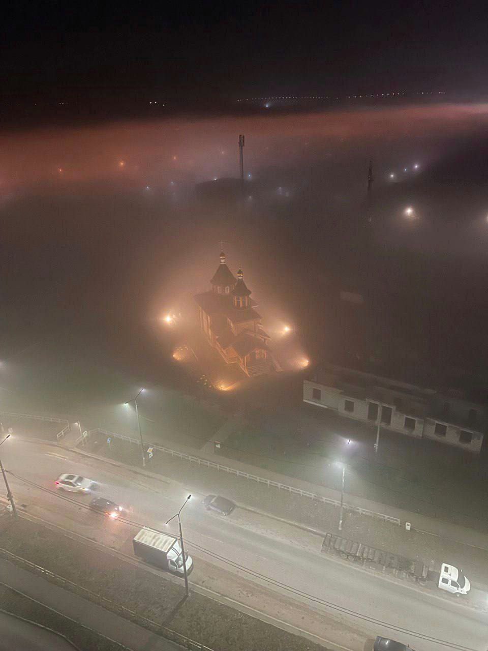 Только что на улице Центральная, перед остановкой поликлиника сбили женщину, в таком тумане ничего не видно