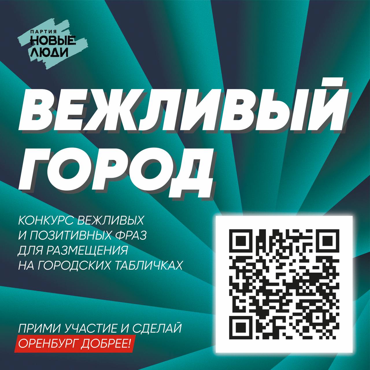 «Новые люди» Оренбуржья запускают конкурс «Вежливый город», в котором каждый житель Оренбурга внесет вклад в позитивный облик города, предложив идею для вежливой и доброй надписи для них.