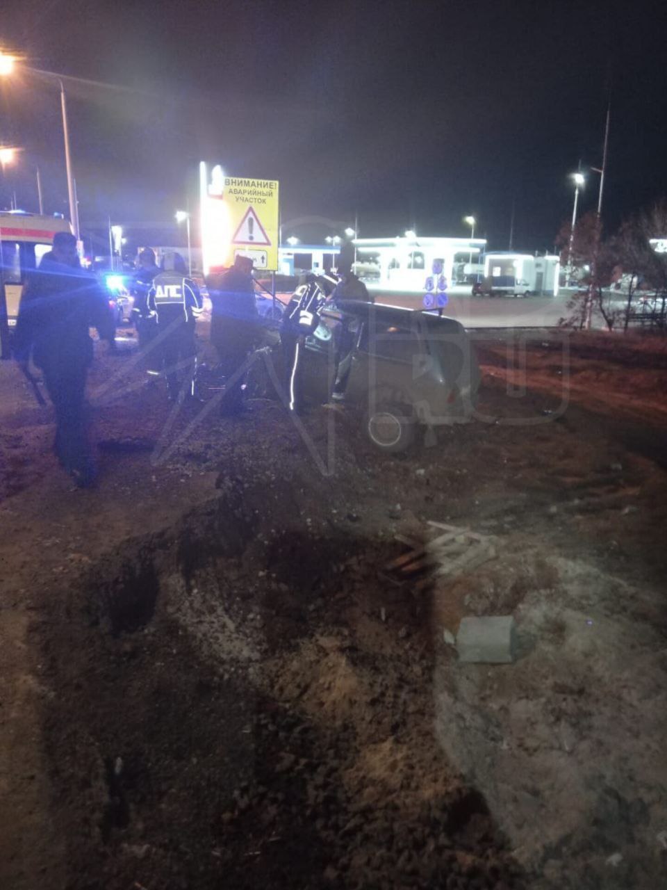 В Оренбурге на Загородном шоссе произошла ночная авария автомобиль съехал в кювет.