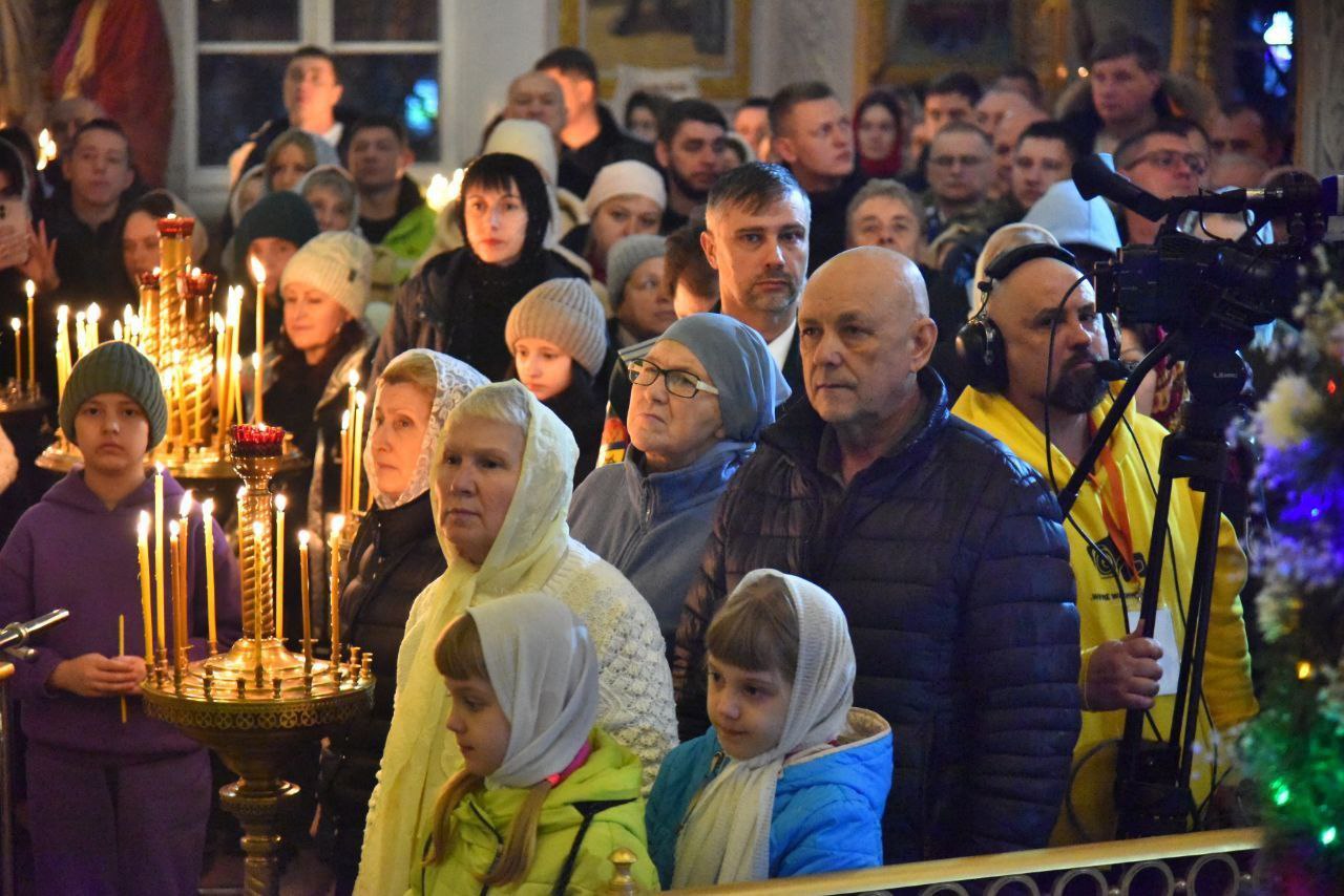 В ходе службы были вознесены особые молитвы о воинстве и о Святой Руси, а также зачитано Рождественское послание Патриарха Московского и всея Руси Кирилла.