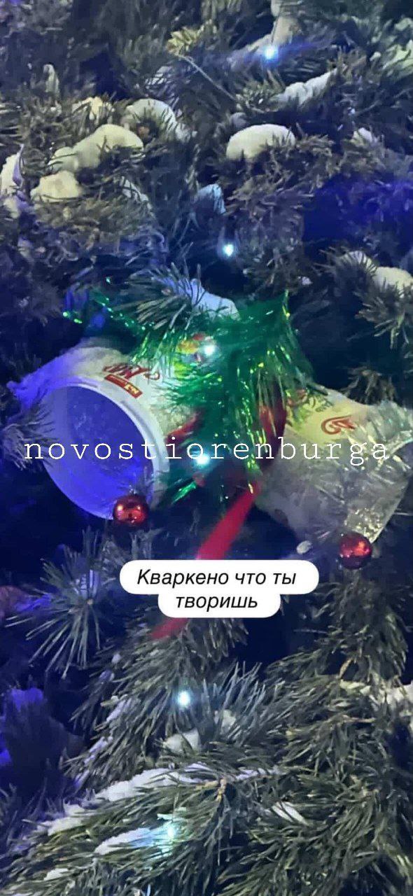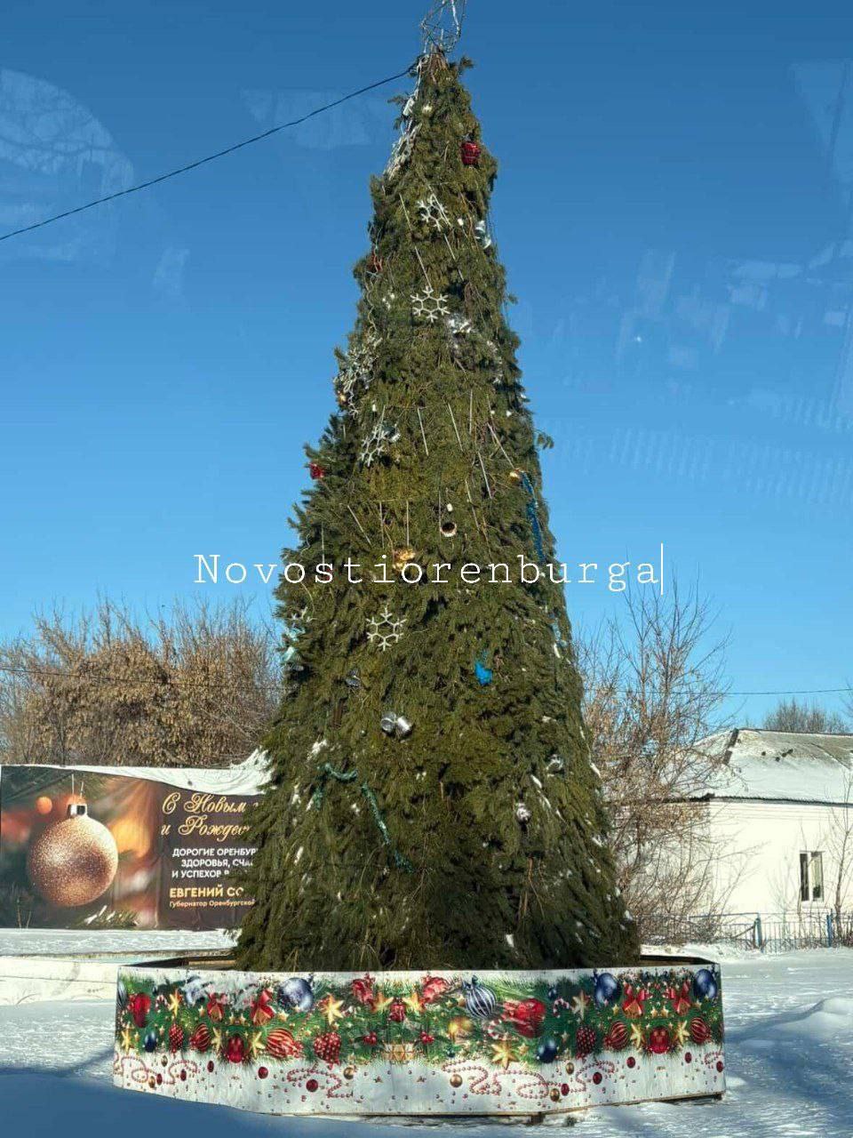 В Кваркено поставили страшную ёлку и украсили банками из под майонеза.