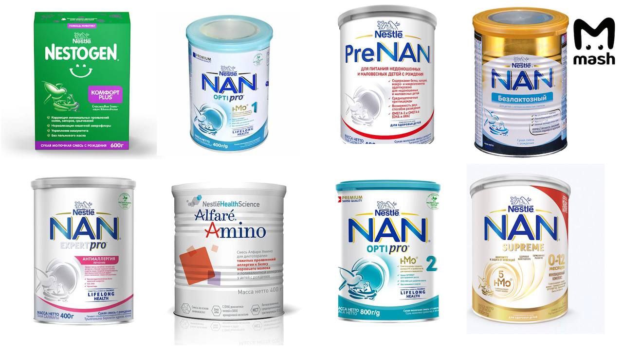 Под ограничения попали молочные, кисломолочные, безлактозные и лечебные смеси, произведённые с 15 апреля по 27 ноября 2025 года, включая: NAN 1 OPTIPRO, NAN 2 OPTIPRO, NAN Supreme, NAN EXPERPRO, NAN безлактозный, PreNAN, Nestogen Комфорт, Алфаре Амино.
