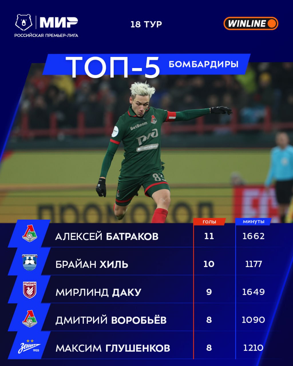 Отдельно отметим Брайана Хиля, который вчера сделал дубль и теперь наступает Батракову на пятки 👀