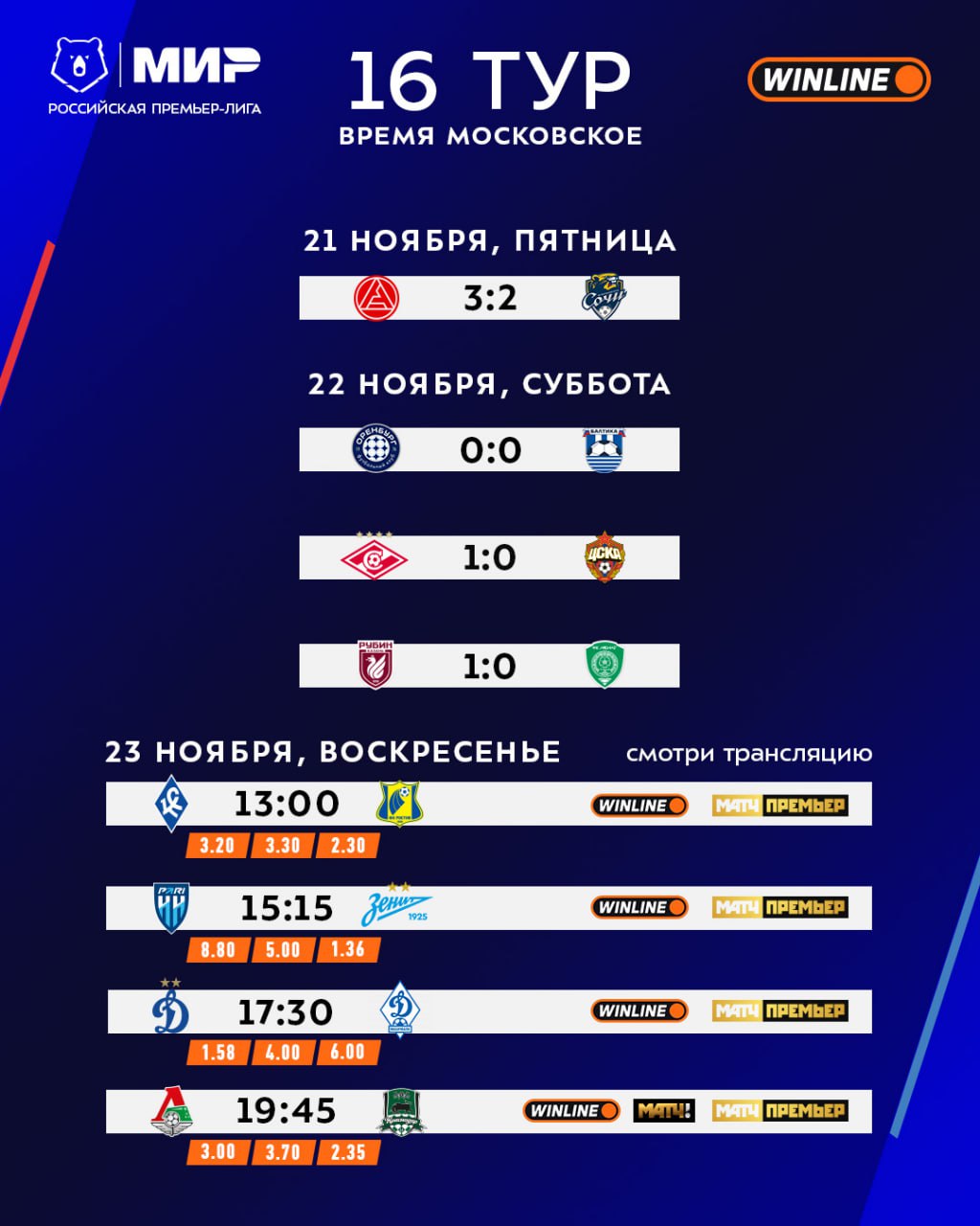 Особый формат, который делает футбол более ярким и увлекательным. Благодаря WINLINE вокруг матчей РПЛ появляются масштабные шоу, создающие атмосферу большого праздника 🤗