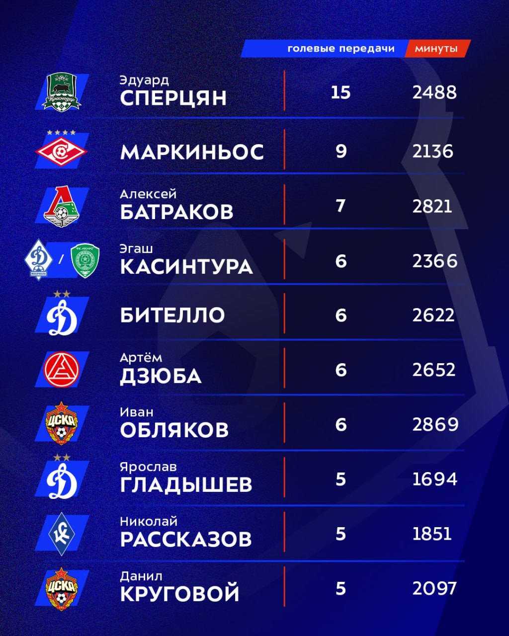 Эдуарда Сперцяна в 2025-м в гонке ассистентов догнать было просто невозможно 🔝