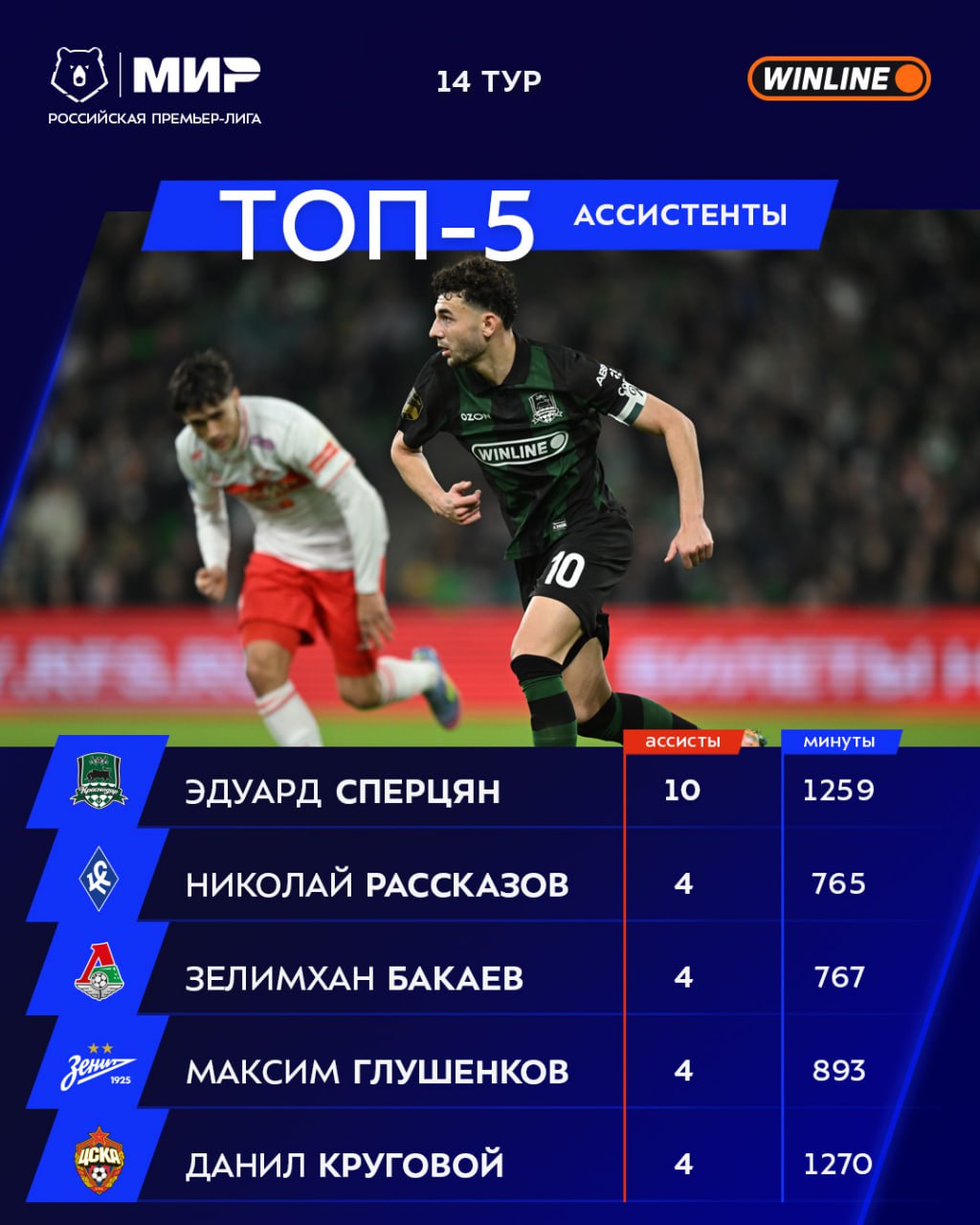 В списке ассистентов всё больше игроков с 4 голевыми передачами, но кто же из них бросится в погоню за Эдуардом Сперцяном? 🤔
