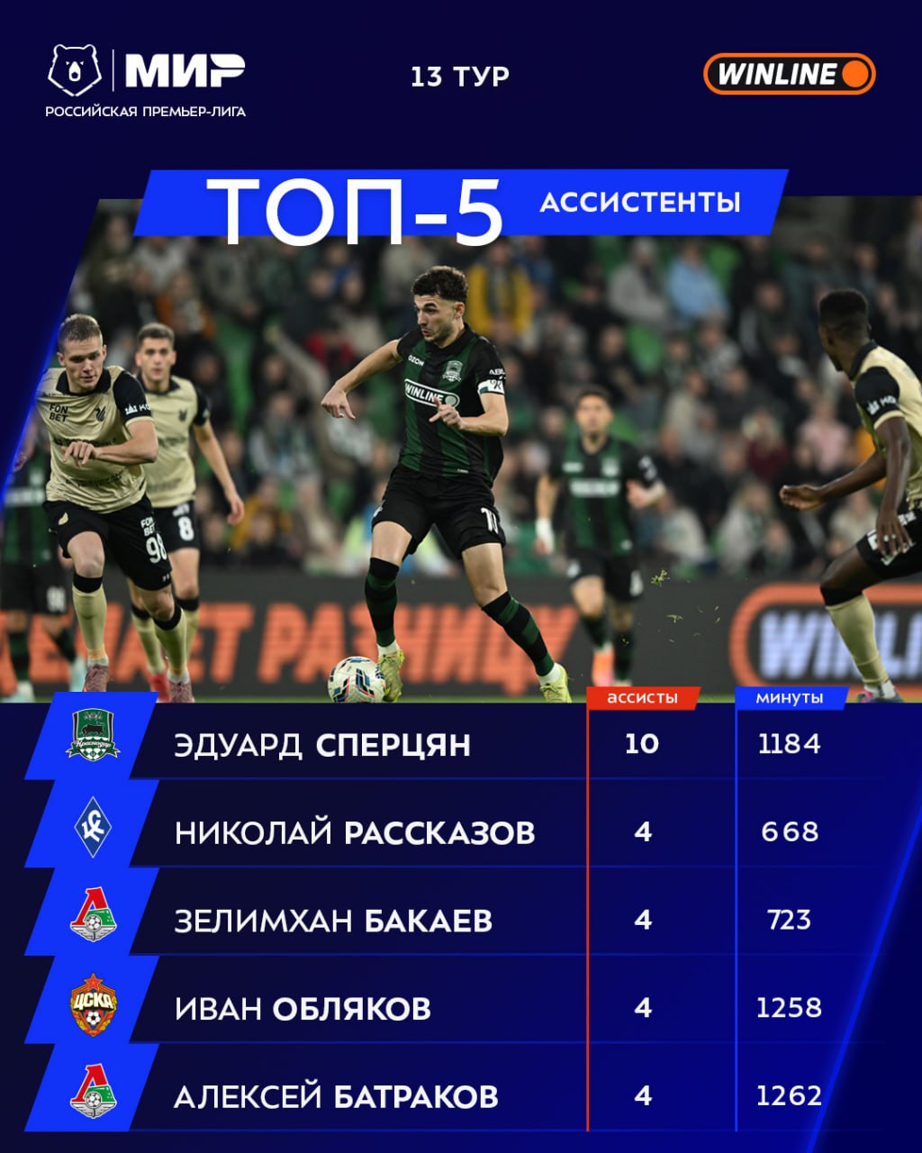 Эдуард Сперцян по-прежнему лидирует в гонке ассистентов с солидным отрывом 👍