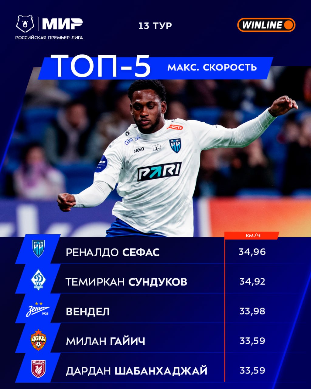 **Реналдо Сефас** и **Темиркан Сундуков** на поле в 13-м туре не встречались, но заочно устроили забег на скорость. Сефас победил — соотечественник Усэйна Болта всё же 🇯🇲
