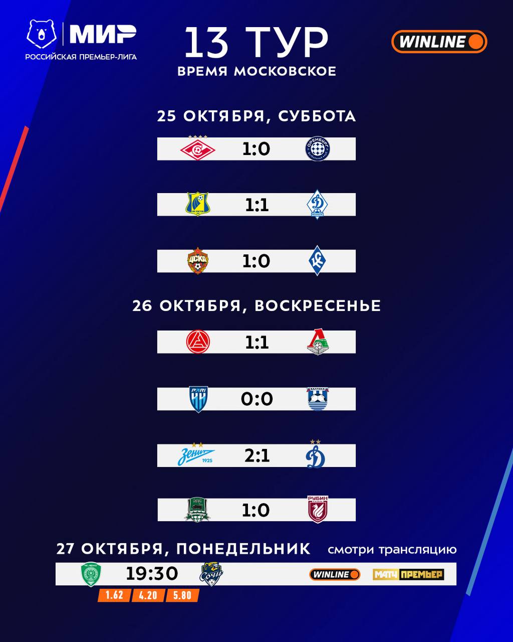 Битва столиц в этот раз за Петербургом — «Зенит» и «Динамо» выяснили, кто же круче, в жарком WINLINE Матче тура 🔥
