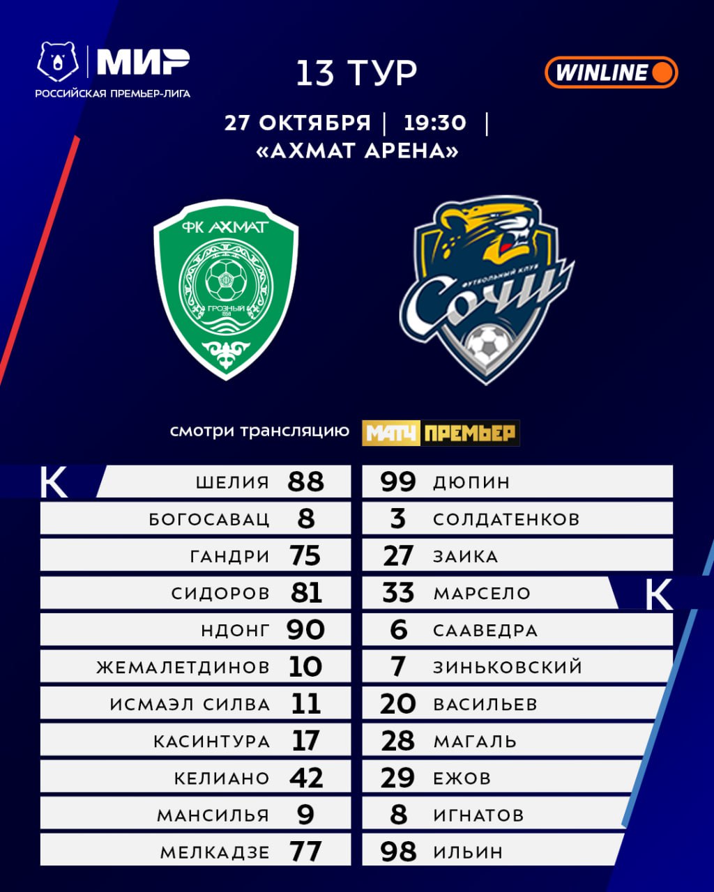 [Трансляция здесь](https://matchtv.ru/football/rpl/552400811-akhmat-sochi-25-10-2025) 📲