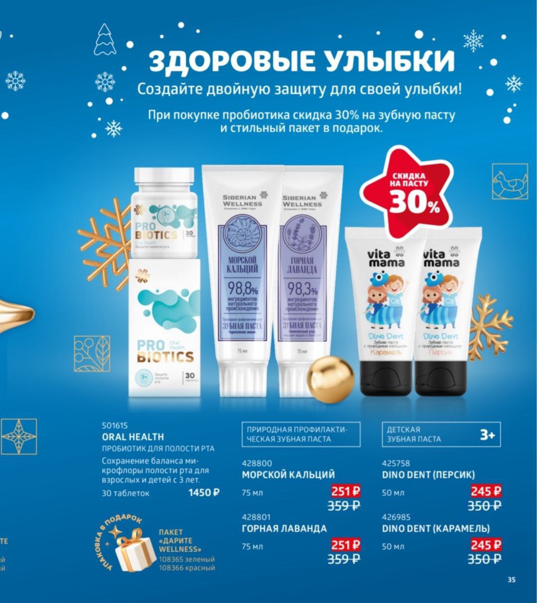 Купи пробиотик и получи скидку 30% на зубную пасту + пакет в подарок