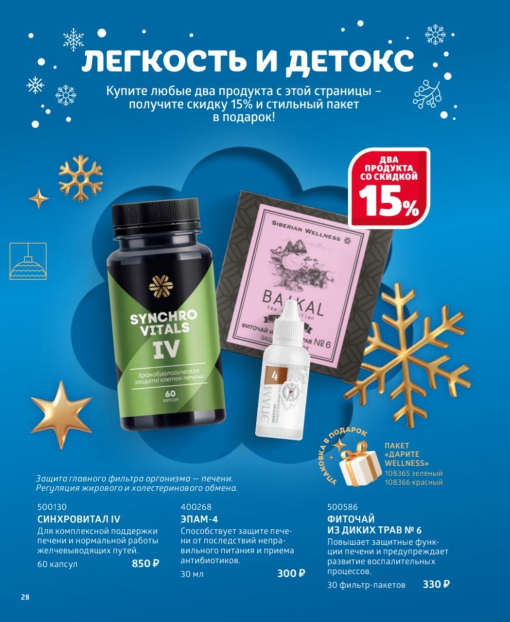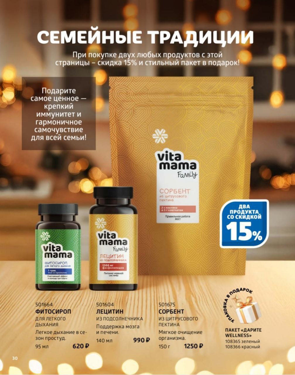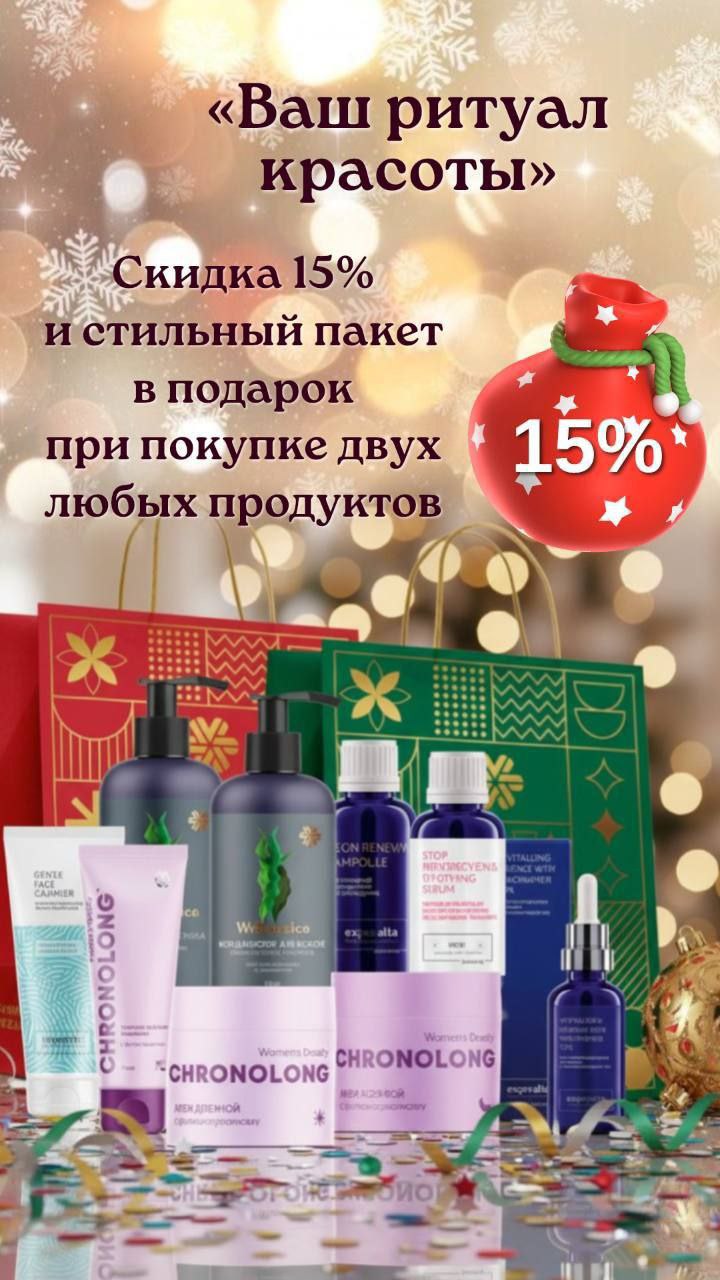 Купи 2 продукта со скидкой 15% и получи пакет в подарок