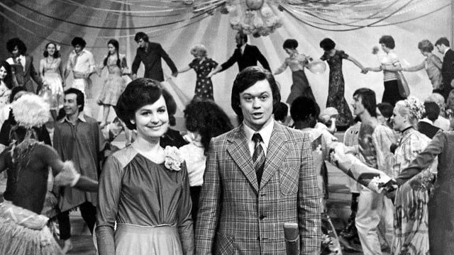 1979 год, Москва. Татьяна Судец и Николай Караченцов - ведущие новогодней телепередачи «Голубой огонек».