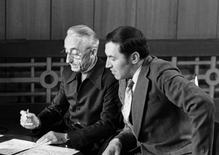 1977 год. Николай Дроздов и гость передачи «В мире животных» Жак Ив Кусто.