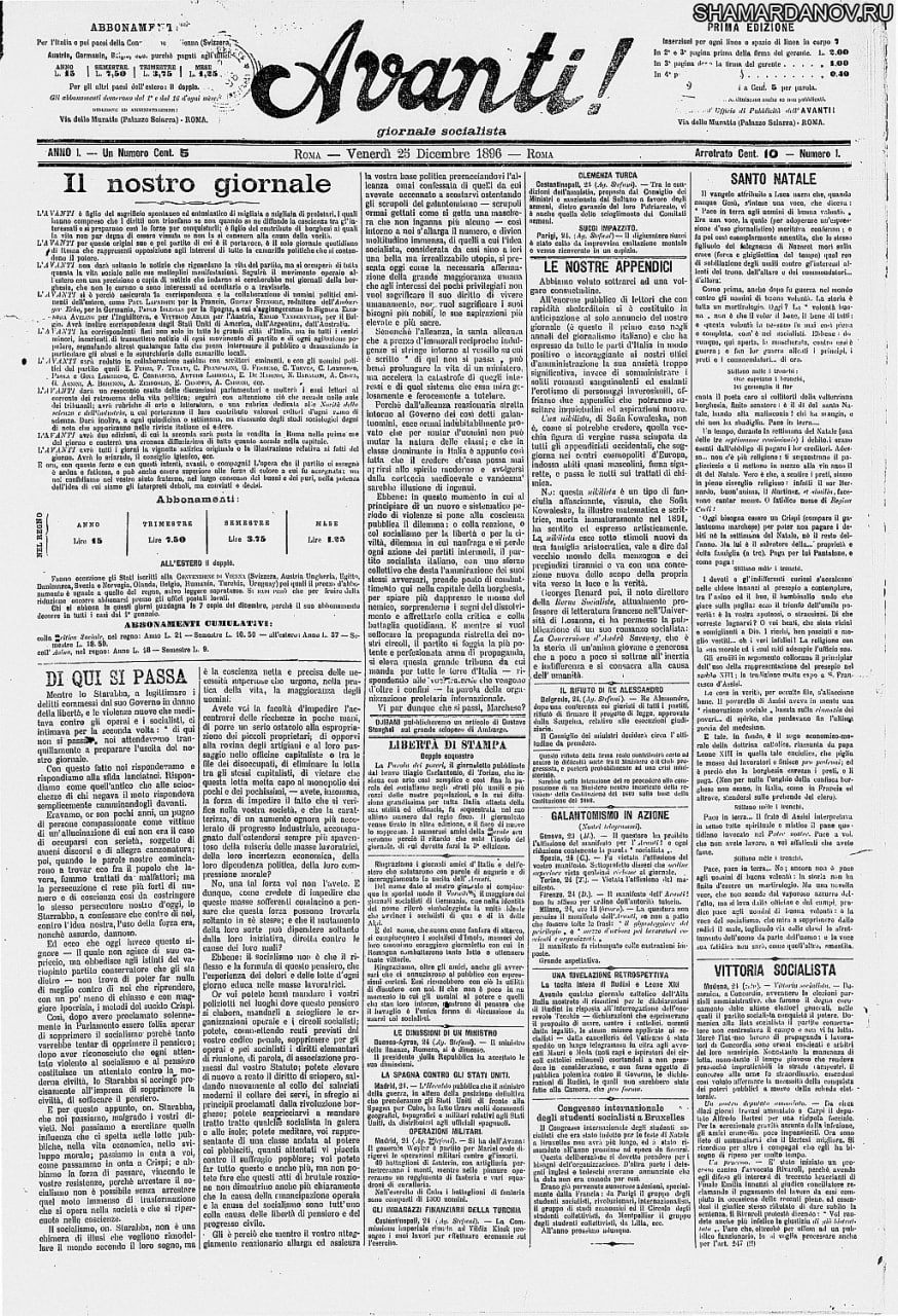 В Милане начала выходить первая социалистическая газета Италии «Аванти!»