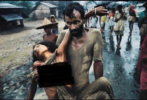 Мужчина на руках переносит свою больную жену в разгар холерной эпидемии в лагере бенгальских беженцев. Война за независимость Бангладеш, 1971 год.