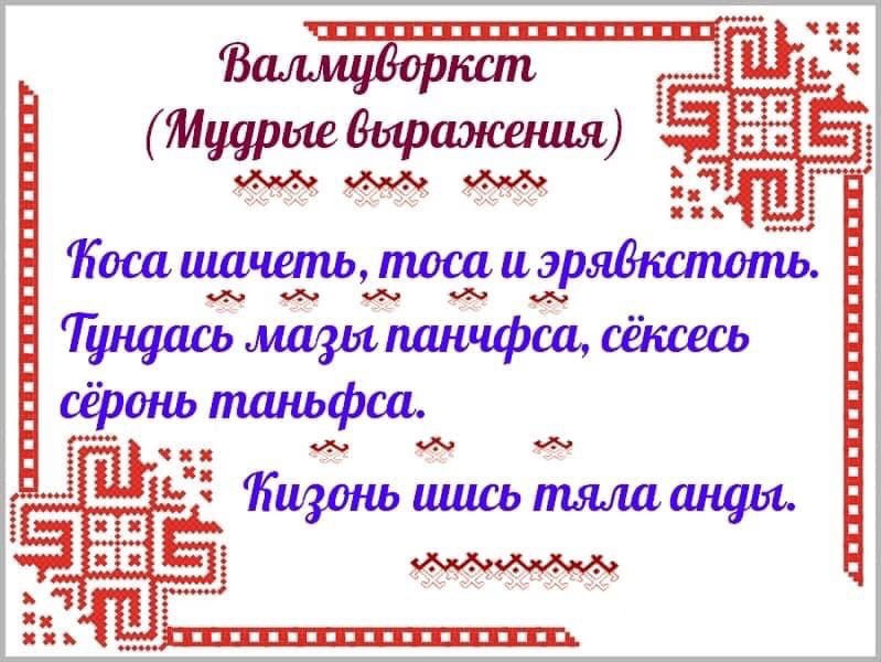 Учителень шить мархта! Катк сельмосонт фалу палы толнясь и крьвясни эсь учениконтень седиса валда мяльхть-арьсемат! Вдь, эрь ломанць эсь эряфсонза эрьси учителькс! И кода корхневи: Учителями славится Россия, ученики приносят славу им! И тя виде!