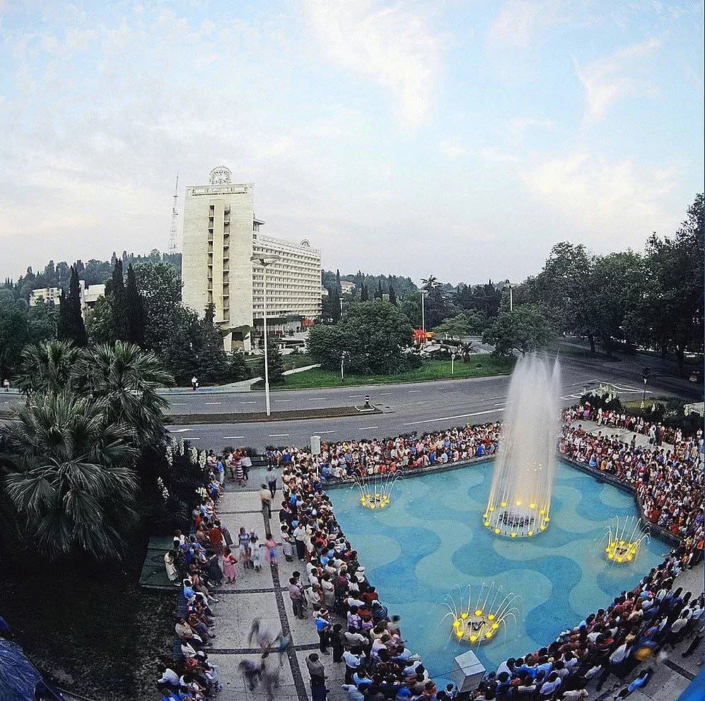 Поющие фонтаны возле гостиницы Москва в Сочи 1987 год