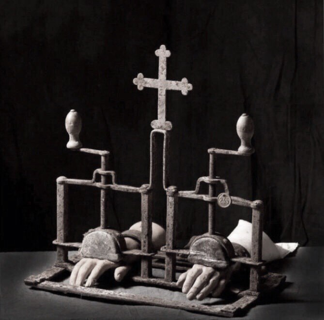 Приспособление для переломa кистей рук - изобретение христианских свящeнников 15 века. С его помощью свящeнники ломали руки учёным, художникaм и скульпторам погрязшим в ереси.
