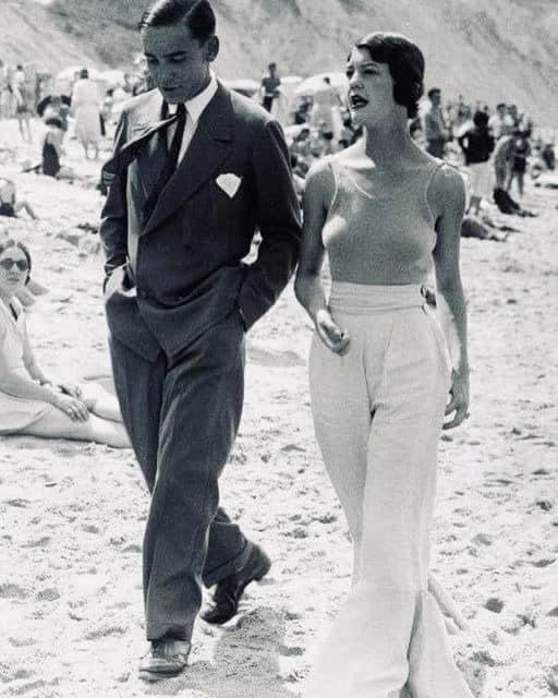 Пара, прогуливающаяся по пляжу, 1920-е