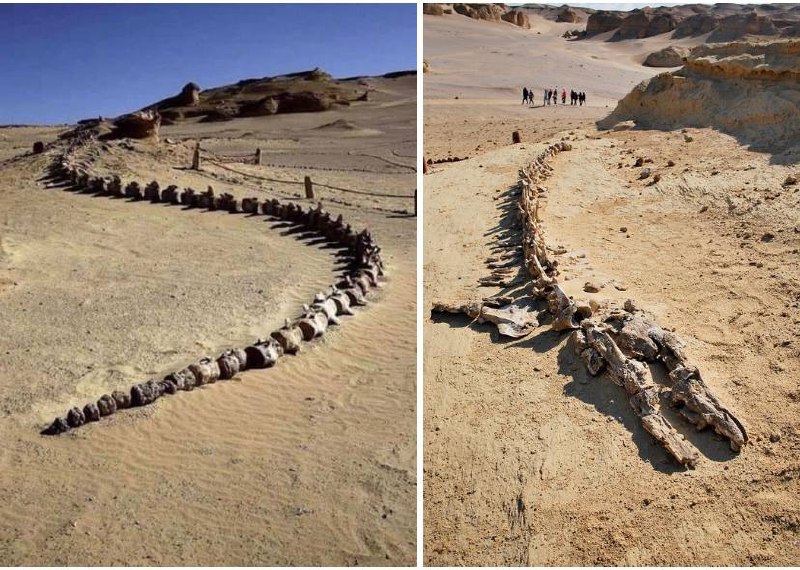 Скелет базилозавра - древнего кита, который жил 35 млн лет назад. Вади-аль-Хитан, Египет.