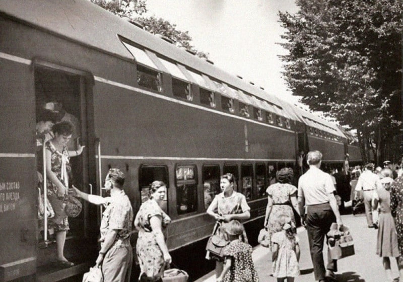 Двухэтажный поезд по маршруту Ковель - Львов. УССР, 1962 год.